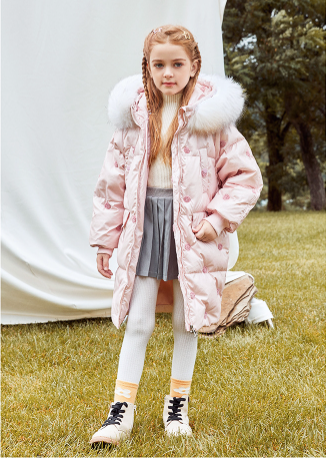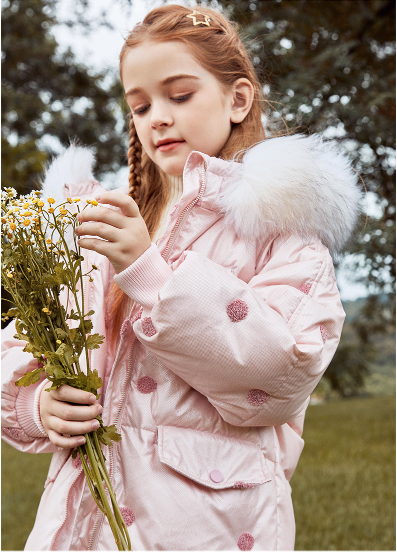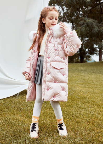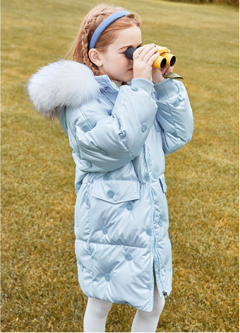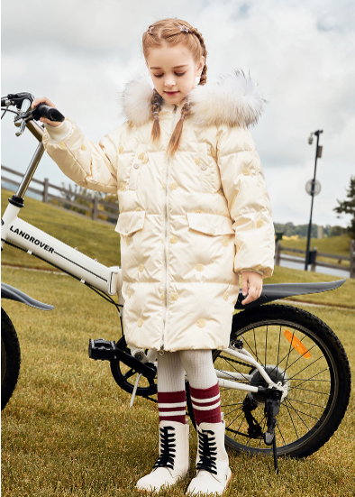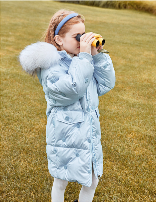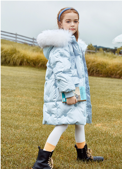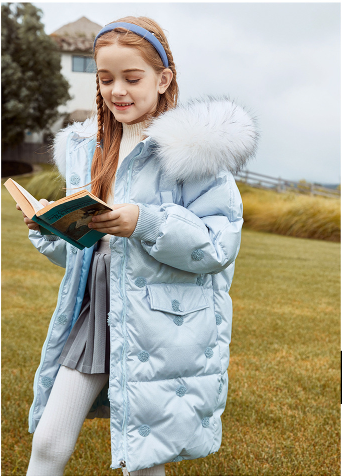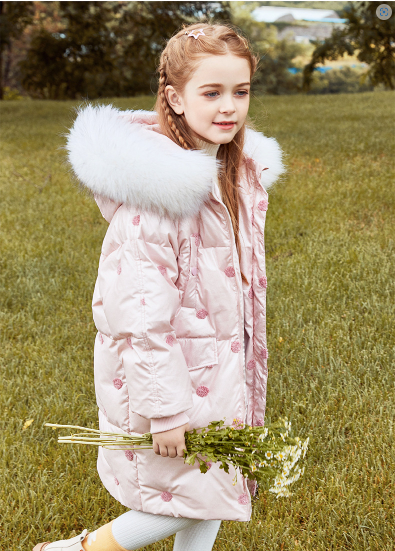 Doudoune mi-longue épaisse coréenne à grand col en fourrure pour enfant