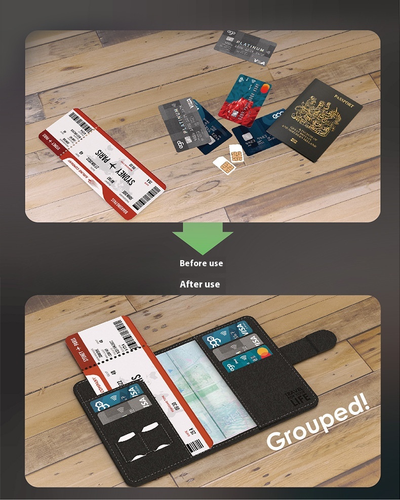 EGO Anti-lost Passport Case Multi-function Travel Abroad Ticket Clip Certificate Card Holder