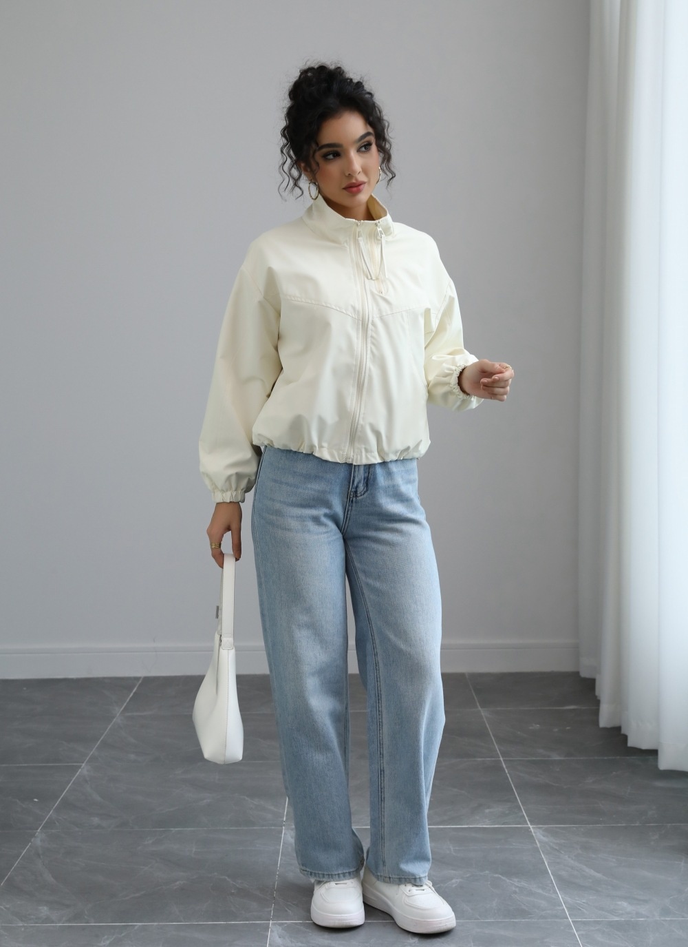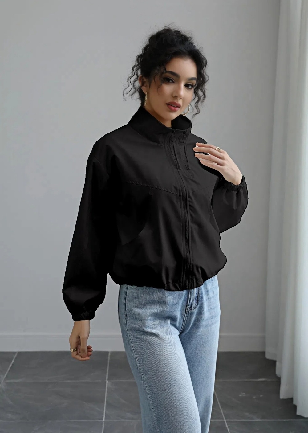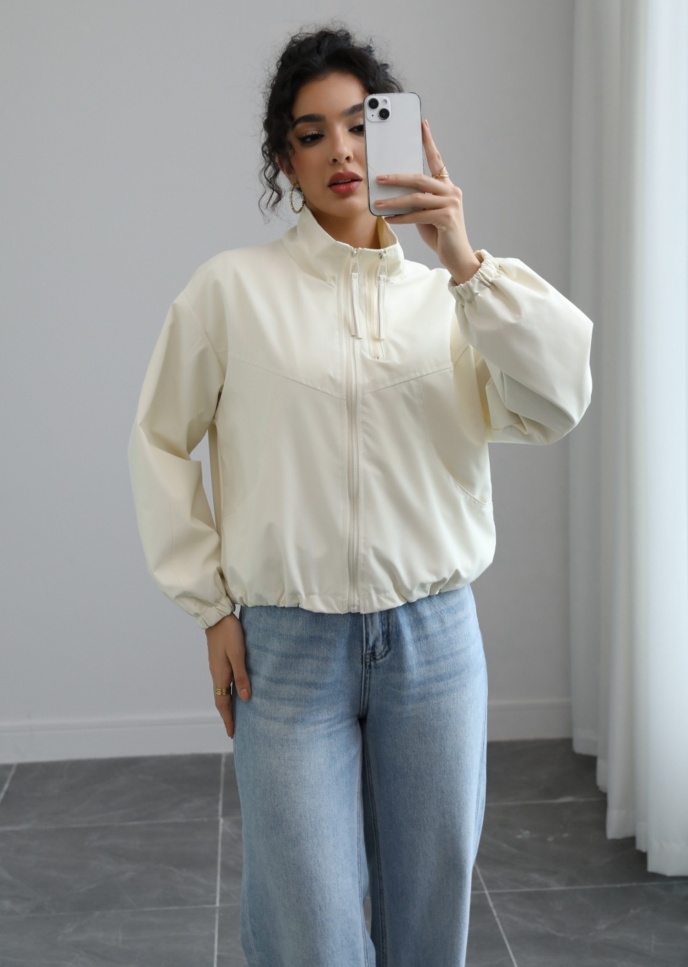 Women's Fashion Waterproof Jacket Short Stand Collar Thin Coat